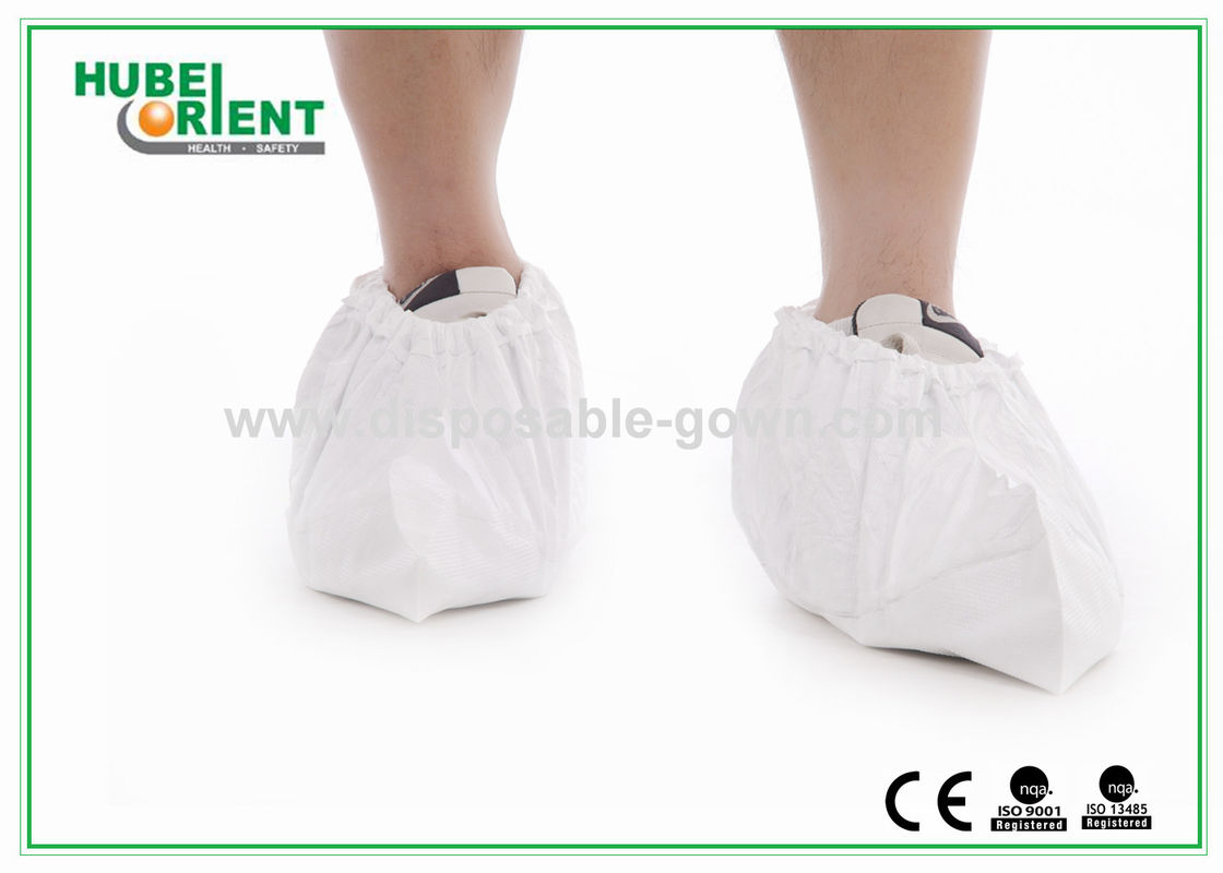 Tutup sepatu sekali pakai Tyvek putih tahan lama dengan telapak kaki CPE nonskid |