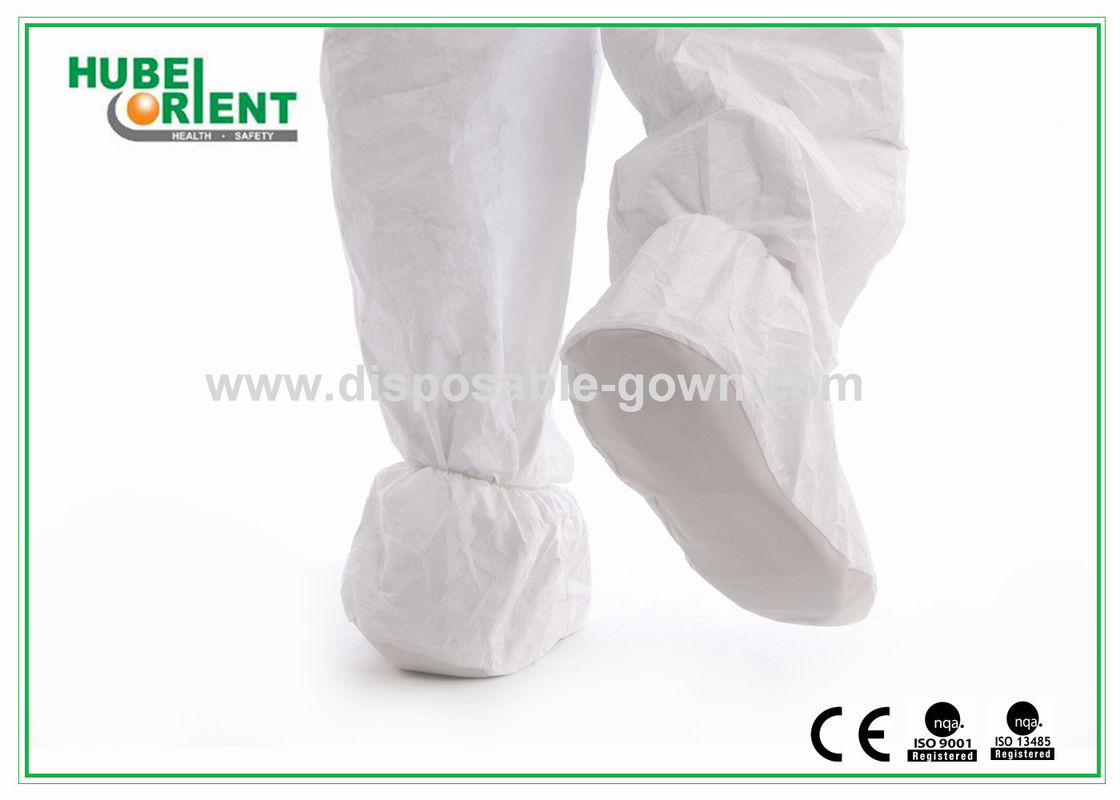 White Slip Resistant Tyvek Sepatu sekali pakai Tutup Sepatu dengan PVC Sol 43gsm