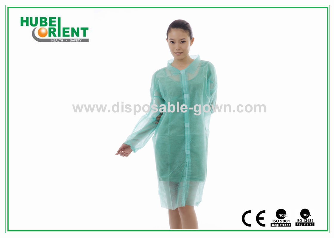 Green Tyvek Lab Coat Satu Kali pakai dengan Nylon Fastener Tape Closure untuk Mencegah debu