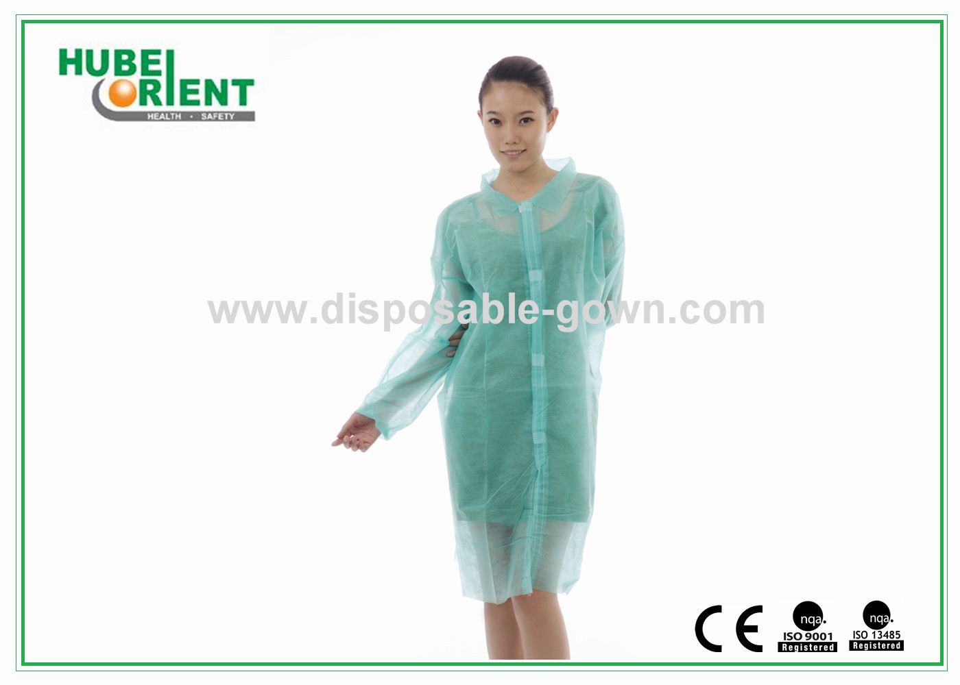 Pakaian laboratorium sekali pakai nonwoven hijau dengan penutupan pita pengikat nilon |