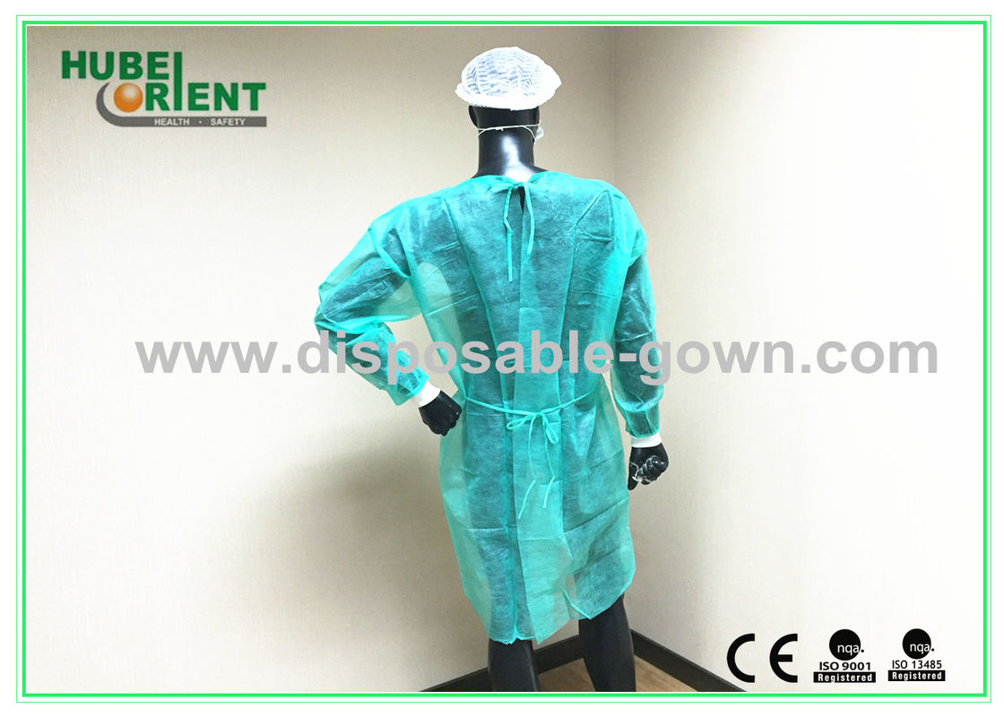 Gaun isolasi sekali pakai polipropilena dengan pergelangan tangan dan dasi kembali rajutan |