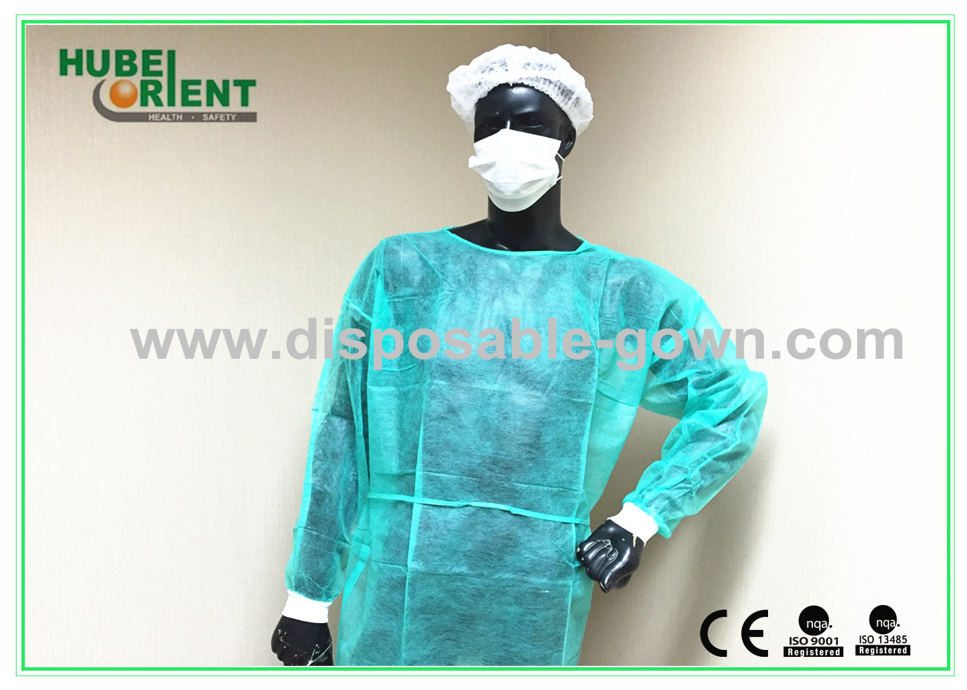 Pakaian isolasi sekali pakai polipropilena hijau dengan manset rajutan, 18 ¢ 40 gsm |