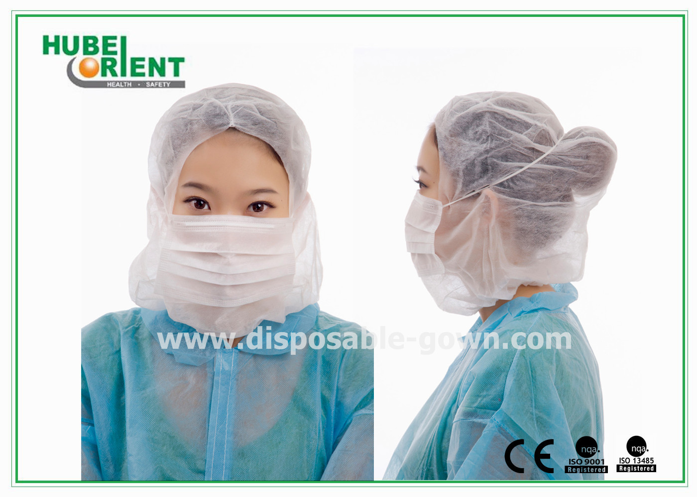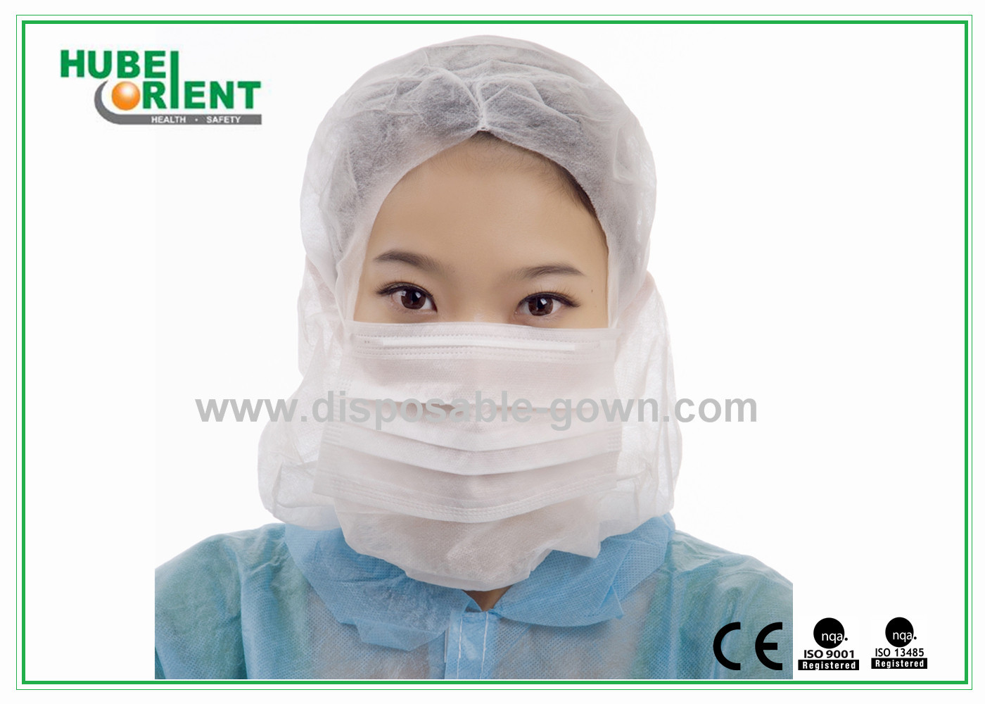 Hood Nonwoven sekali pakai dengan 3ply Face Mask untuk Cleanroom dan Industri Makanan, Warna, ukuran, berat dan pengemasan dapat disesuaikan.