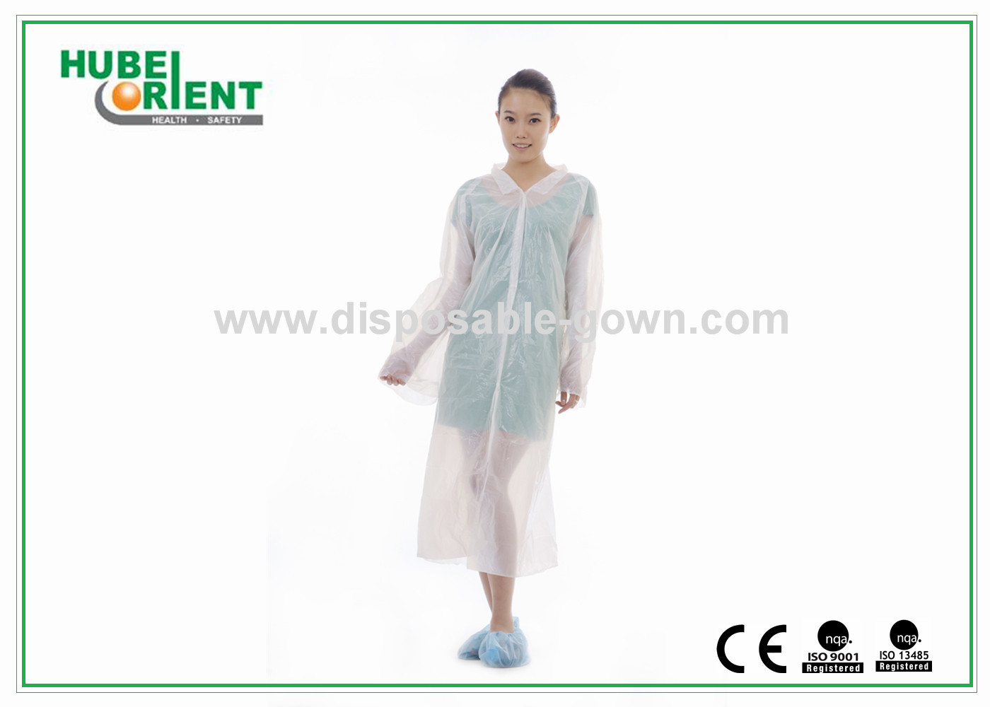 Pakaian Pengunjung PE tahan air putih sekali pakai dengan snaps dan lengan panjang untuk digunakan di pabrik