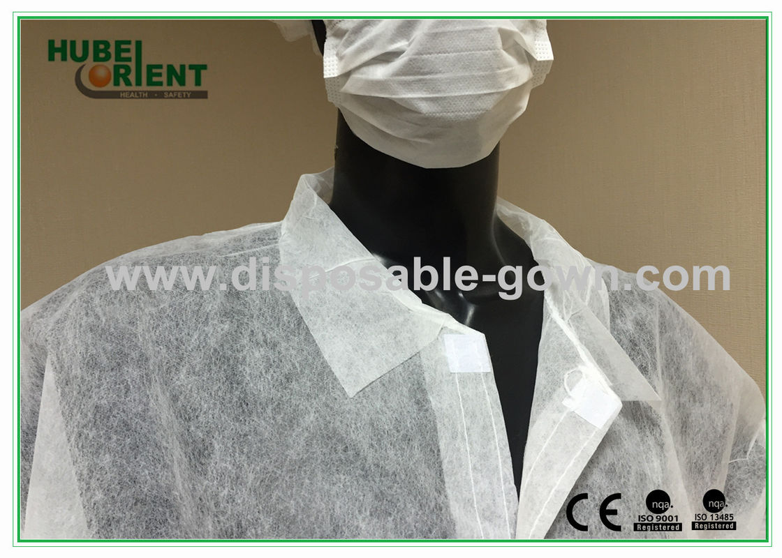Pakaian Lab Pelindung Satu Kali Penggunaan Dengan Velcros Dan Kerah Gaya Kaos Untuk Laboratorium / Pabrik / Industri Makanan