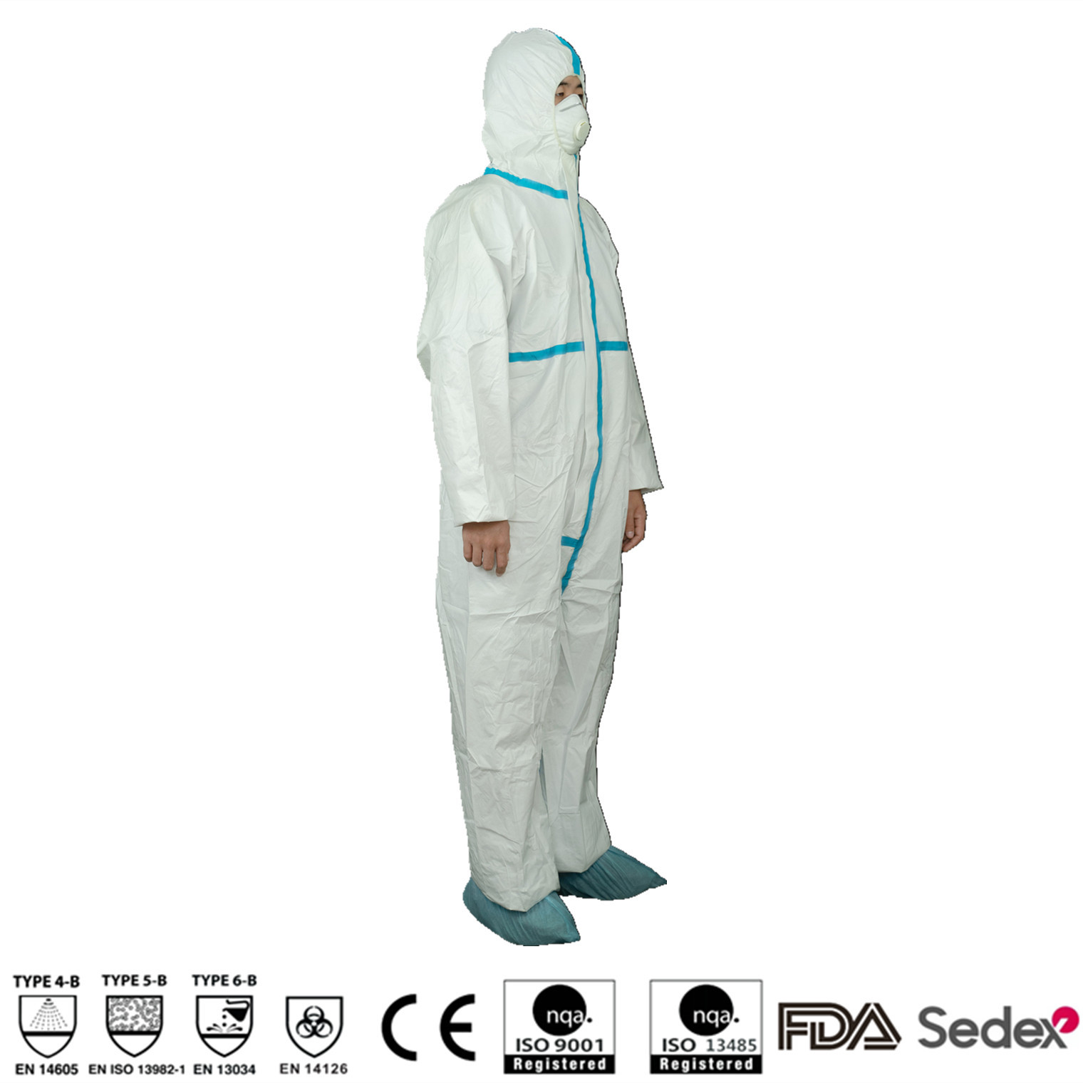 Tipe4B/5B/6B MP Coverall sekali pakai dengan pita biru