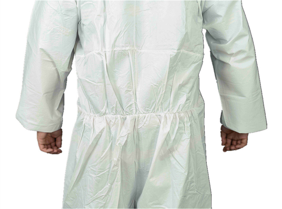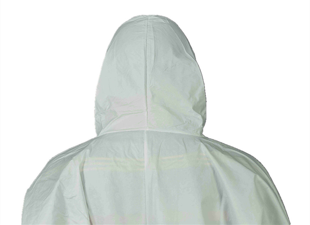 PPE Pakaian Tipe 5/6 Putih Bernafas Ringan sekali pakai Microporous Film Coverall Dengan Hood
