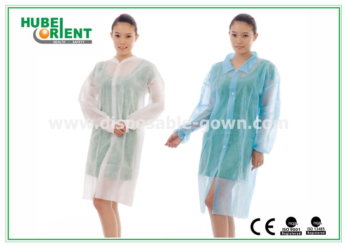 Dengan kemeja kerah rajutan manset Laboratorium sekali pakai mantel yang dibuat oleh bernapas non tenunan untuk mencegah debu