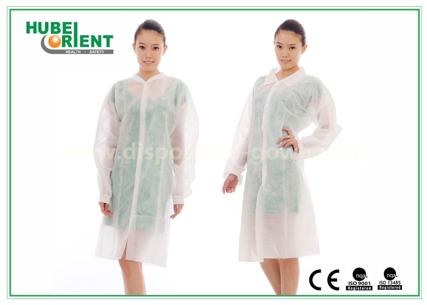 Satu kali pakaiLab coat terbuat dari PP,SMS,MP,Tyvek bebas lateks, tahan abrasi, bulu rendah, dengan tingkat tinggi fluid repellence.